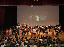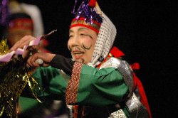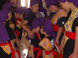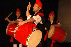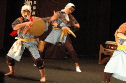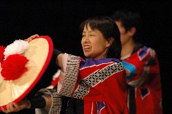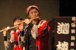 | 1月29日(土) 「島人(しまんちゅ)と山人(やまんちゅ)のコラボレーション」と題して、沖縄粟国島の青年団と八重山民謡のもえちゃんと、迦楼羅のステージが催されました。ピカデリーホルはもとは映画館。階段席のアングラ劇場の雰囲気の中で、キャパ200に対して、公開された入場者数は220人。実際はそれをはるかに超える入場者が通路にまで溢れ、大盛況の舞台でした。 | |||||||||||||||||||||