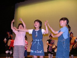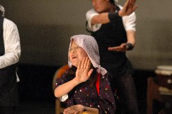 ← 出番待ち ゆうすけとみっちゃんを真ん中 に気合? 今回の舞台はみんないい顔→ いつもはシャイなはやと君の笑顔 がよかった。 |
